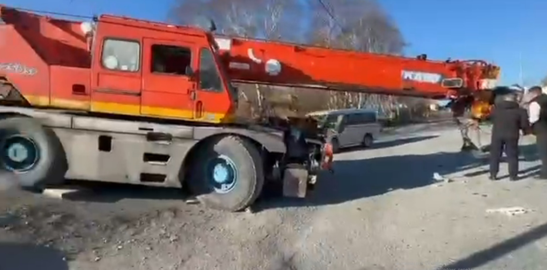 По предварительной информации, 60-летний водитель автокрана не предоставил преимущество двигавшемуся по главной дороге автомобилю Honda, задев его секцией стрелы. Поврежденную легковушку отбросило на световую опору. Судя по кадрам с места происшествия, у Honda срезало крышу.