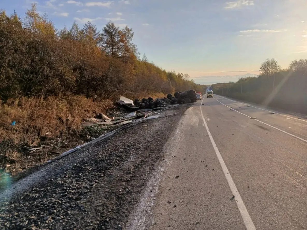 ДТП произошло во вторник, 14 октября, на 528 км трассы «Хабаровск-Лидога-Ванино». Большегруз Freightliner съехал в кювет.